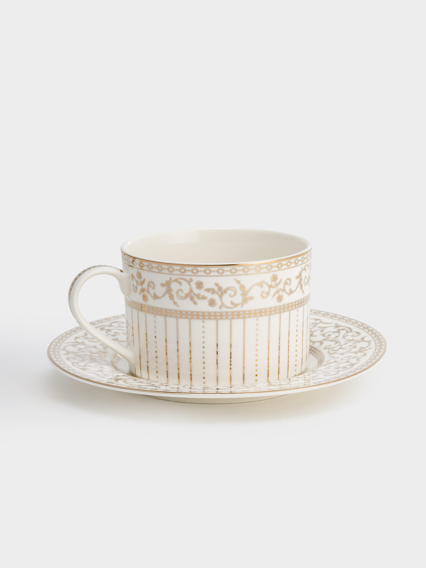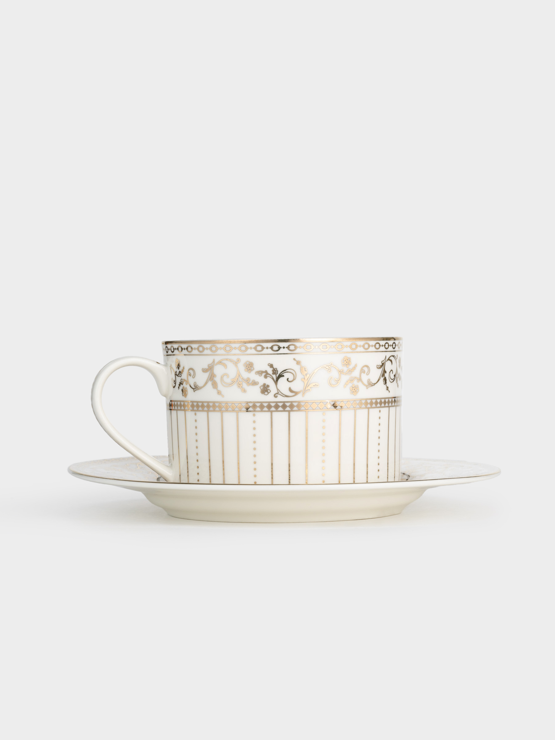 Чайная пара 220 мл, фарфор белый, с золотистым орнаментом Golden, Pozzi Milano