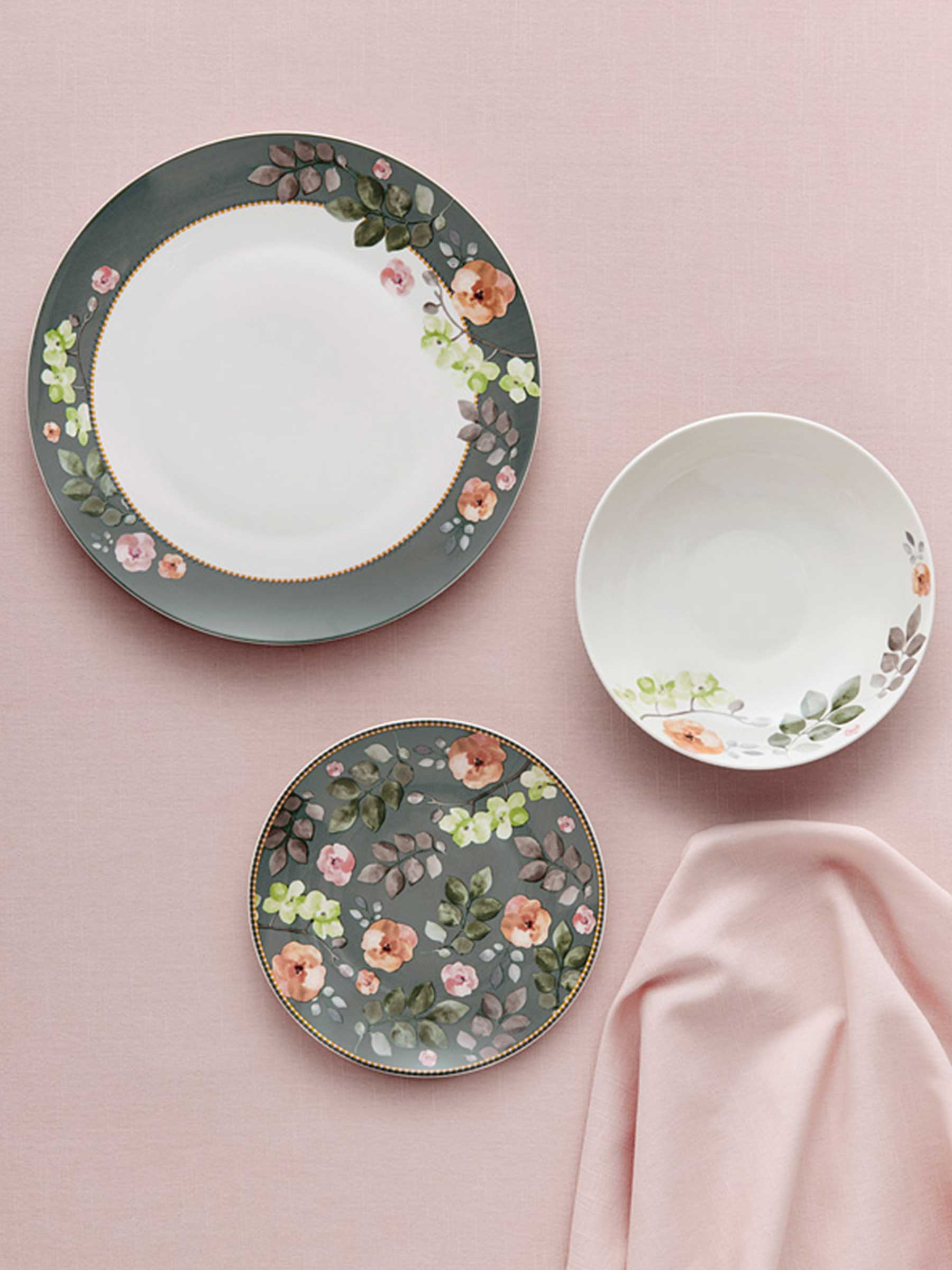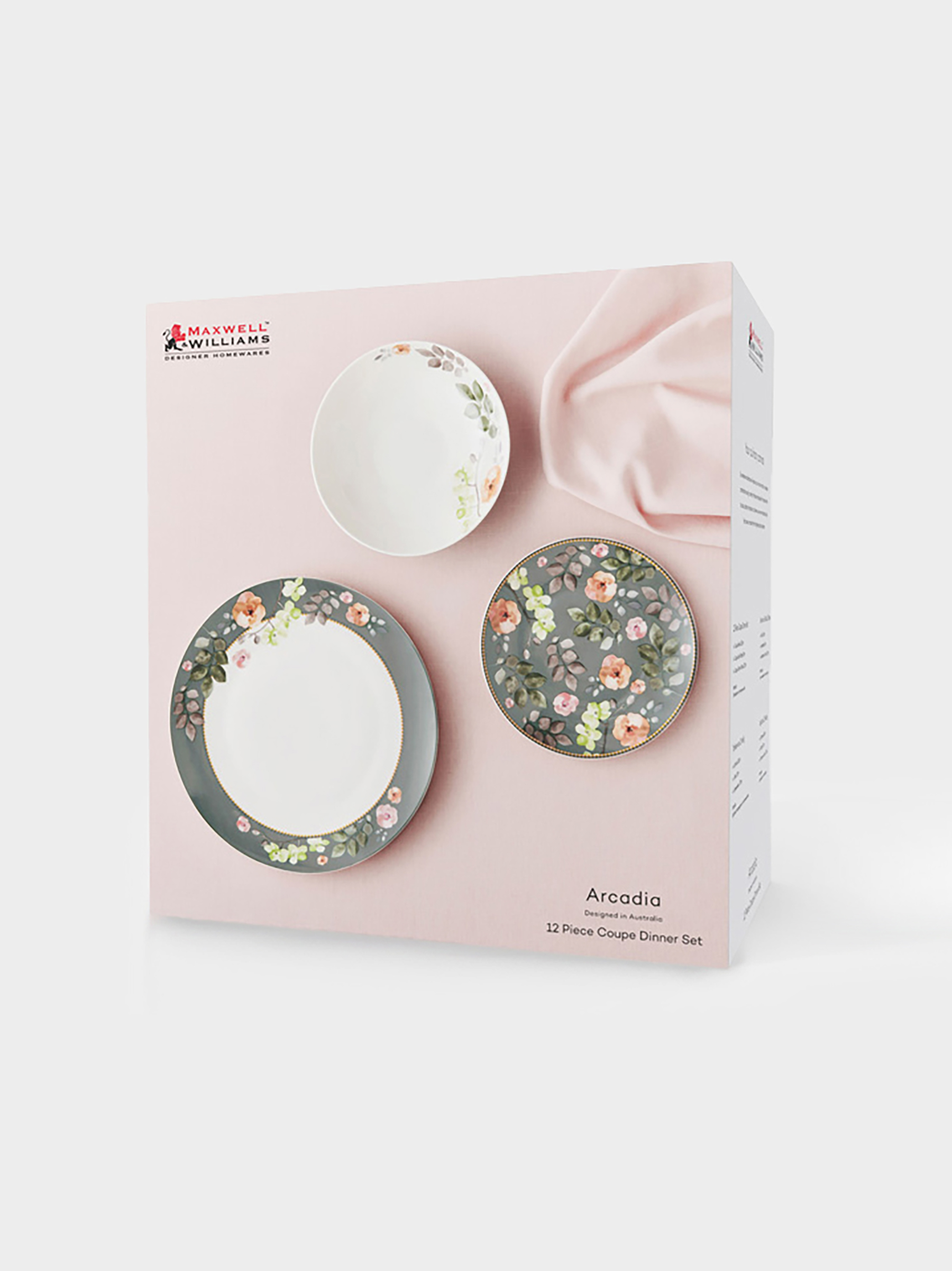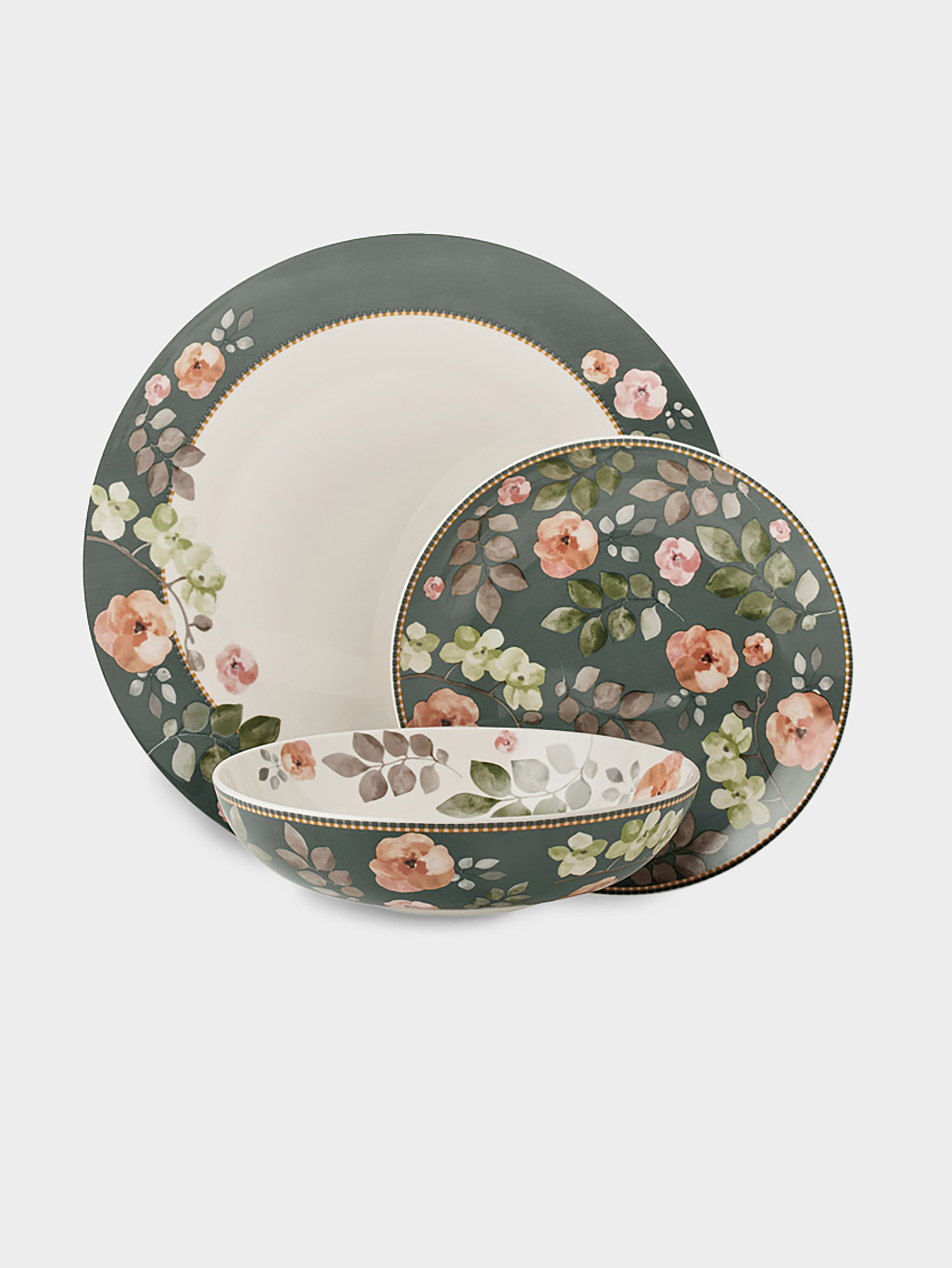 Сервиз обеденный, 4 перс, 12 пр, фарфор P, серо-зеленый, Цветы, Arcadia.