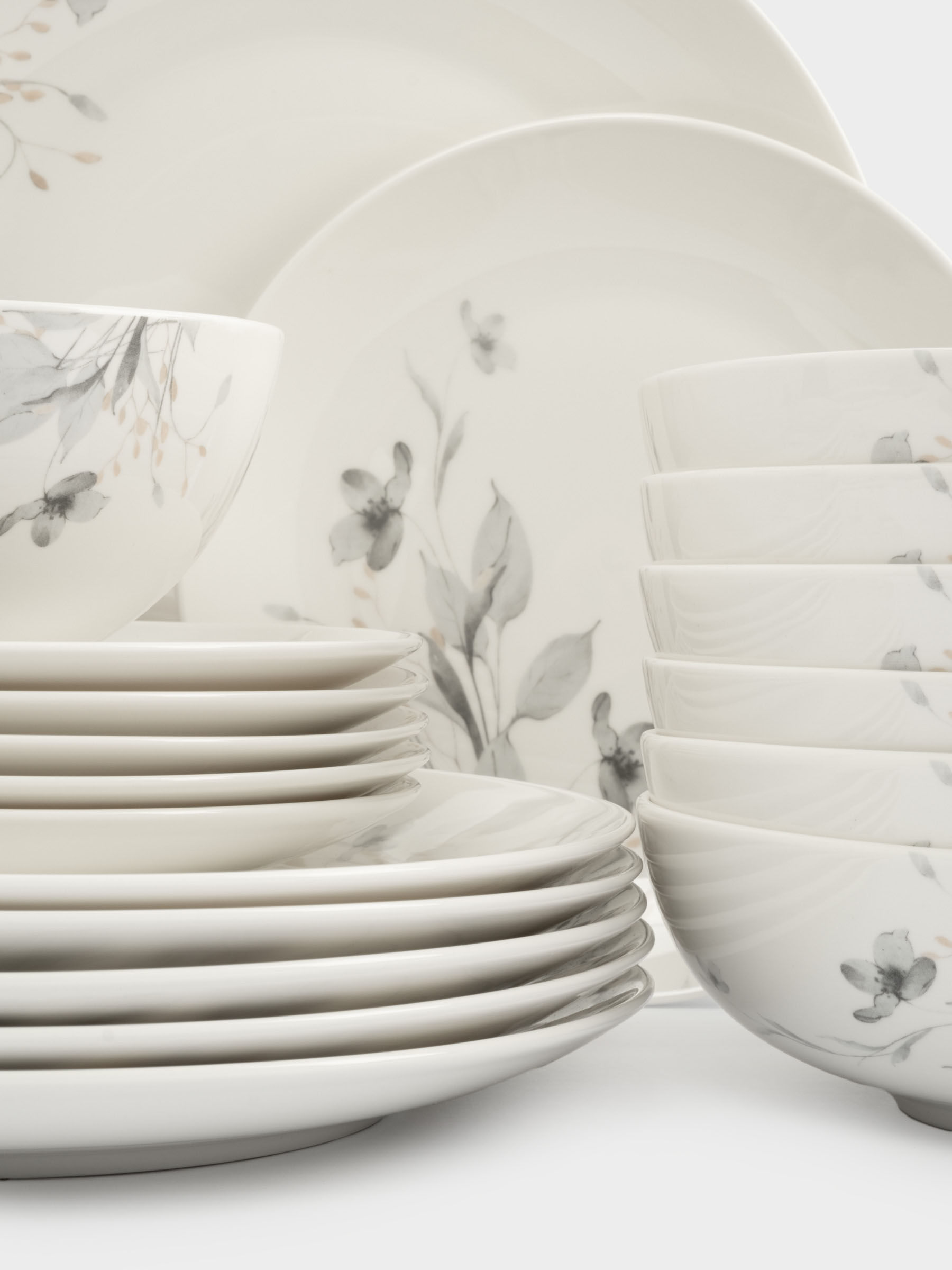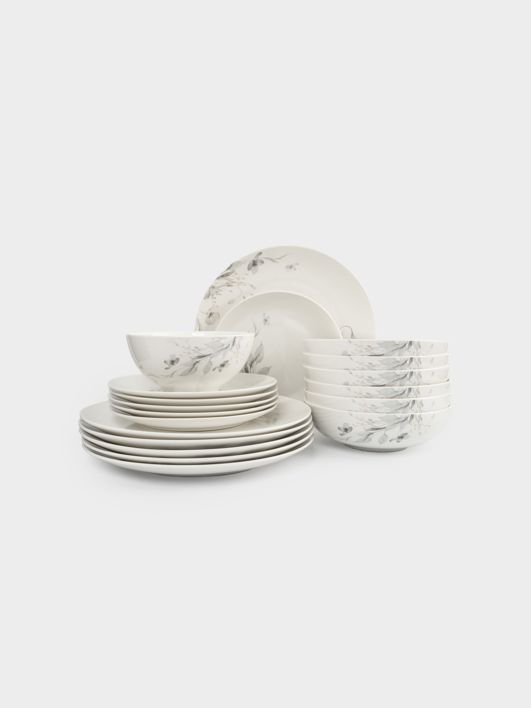 Комплектация и размеры: тарелка обеденная, 27 см - 6 шт.; тарелка десертная, 20 см - 6 шт.; тарелка суповая, 19х6 cм, 860 мл - 6 шт.; салатник, 16х7 см, 700 мл - 1 шт.