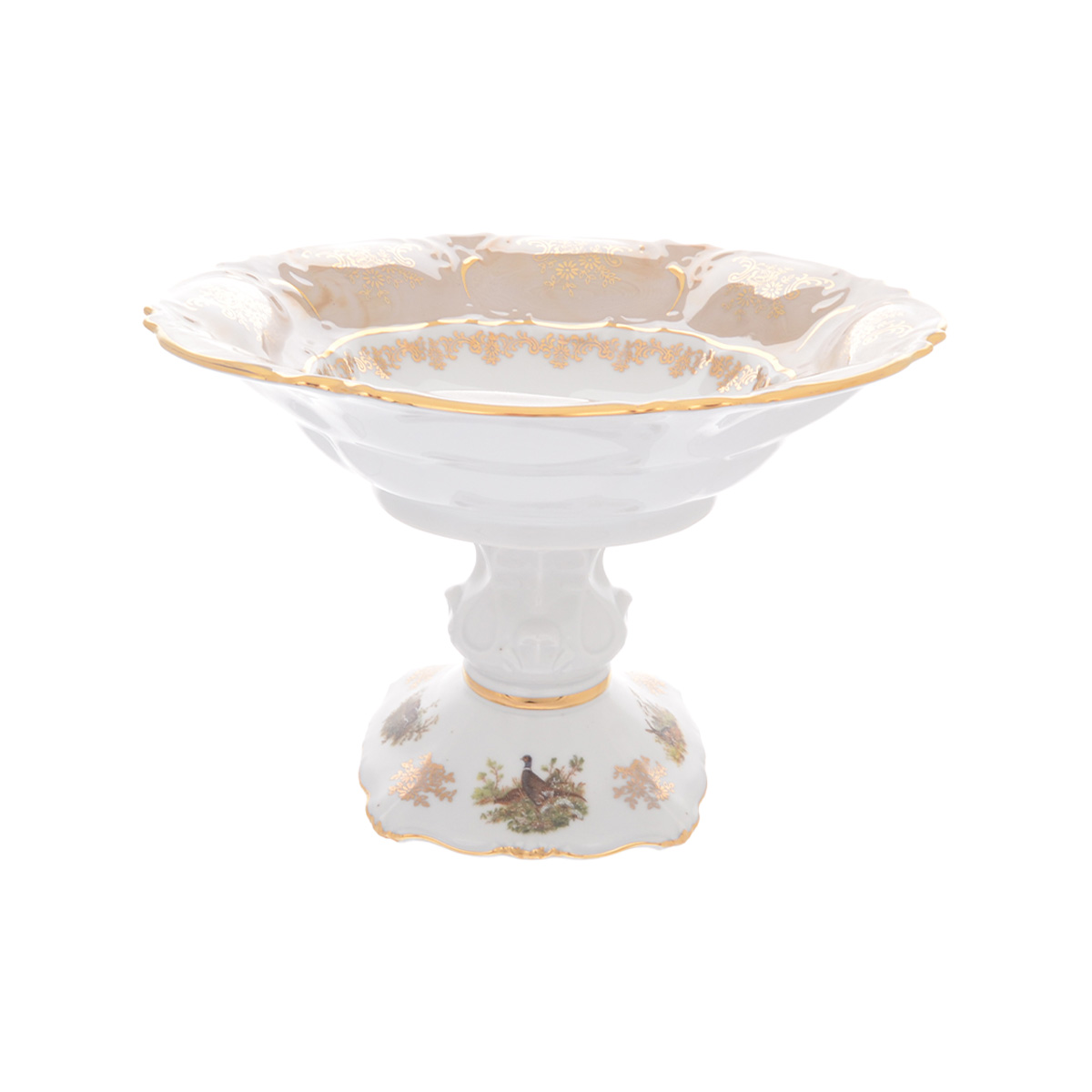 Конфетница на ноге Crown Aristokrat Охота бежевая 27 см