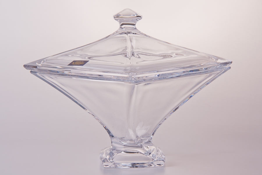 Конфетница с крышкой 22,5 см Квадро, Crystalite Bohemia, Чехия