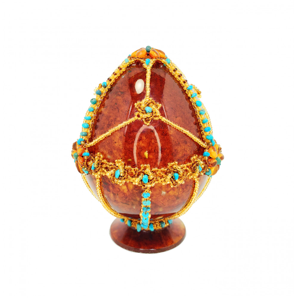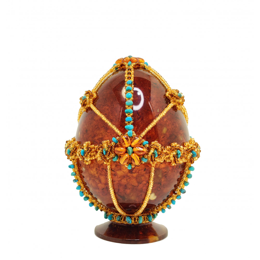 Состав: янтарь натуральный, бисер, натуральная бирюза, Высота 12 см, диаметр 8 см.