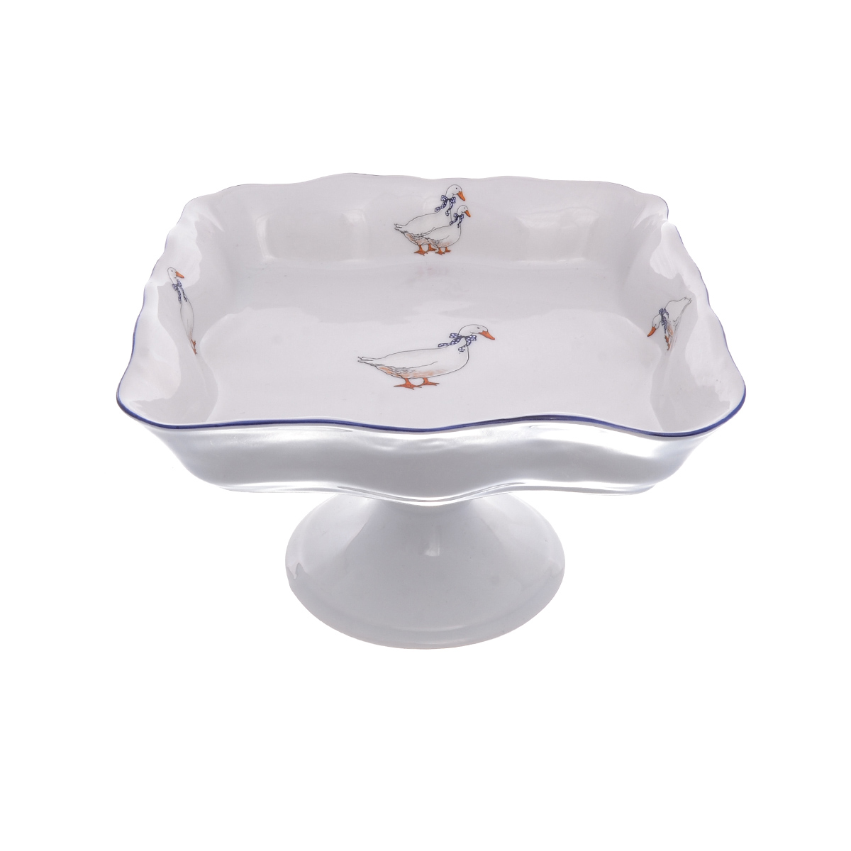 Салатник квадратный на ножке Queen’s Crown Гуси 18*12*18 см